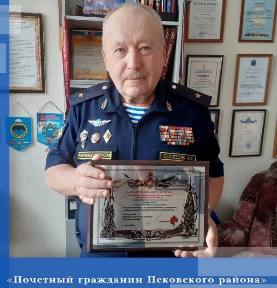 Он оказывает неоценимую помощь в военно-патриотическом воспитании подрастающего поколения в Псковском районе. Для нескольких поколений псковских десантников Юрий Соседов - живая легенда, и мы этим гордимся!