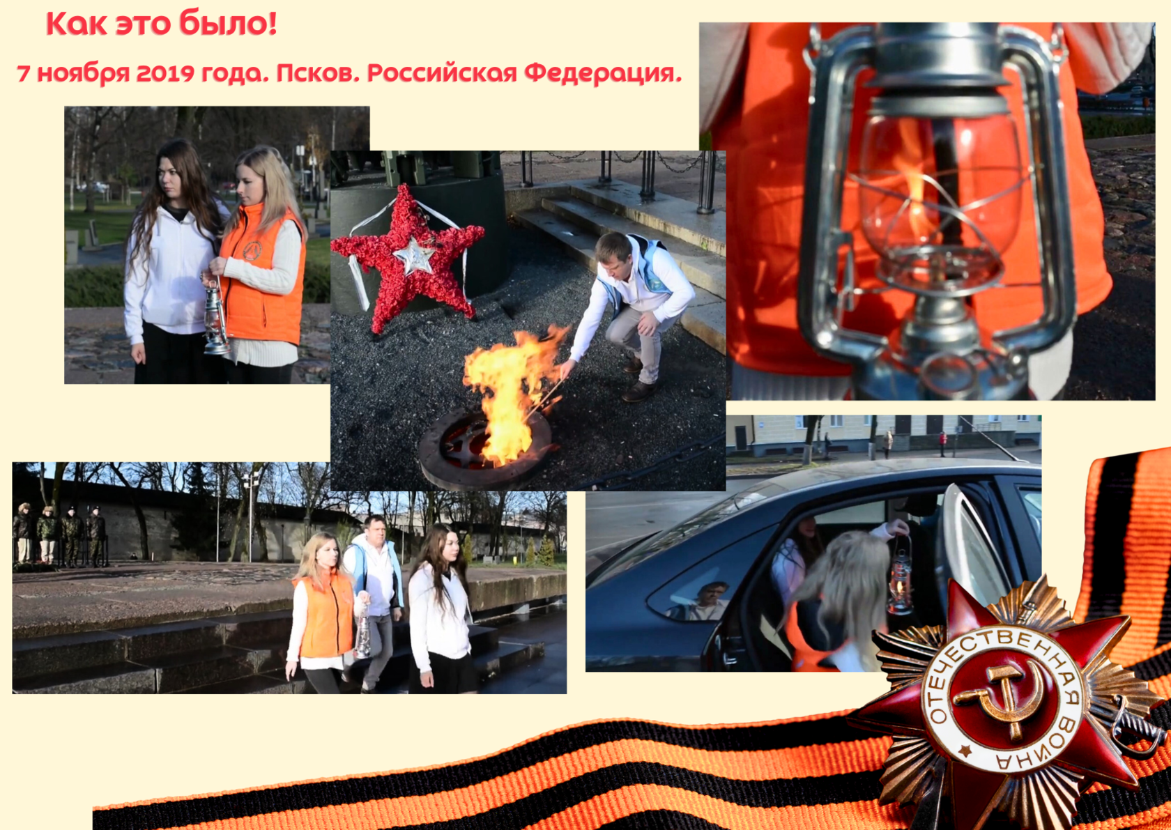 Решение было принято, и 7 ноября 2019 года волонтеры ОМД "ЛИГА МОЛОДЁЖИ" совместно с добровольцами клуба "Патриот", торжественно зажгли лампу от мемориального комплекса "Вечный Огонь" на Площади Победы в городе Пскове и отправились в путь, до города Даугавпилс.