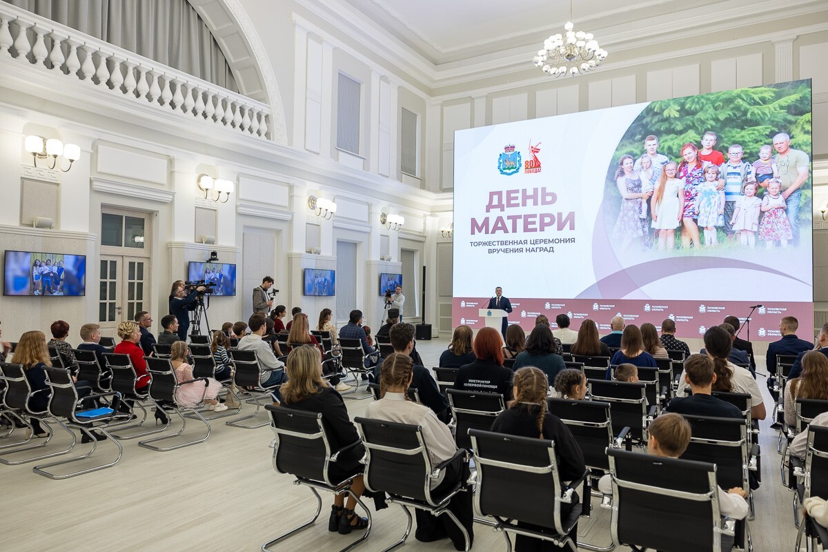 В Правительстве Псковской области состоялось торжественное вручение государственных и региональных наград многодетным семьям, приуроченное ко Дню матери. Награды получили семьи, внесшие значительный вклад в укрепление института семьи и воспитание детей.