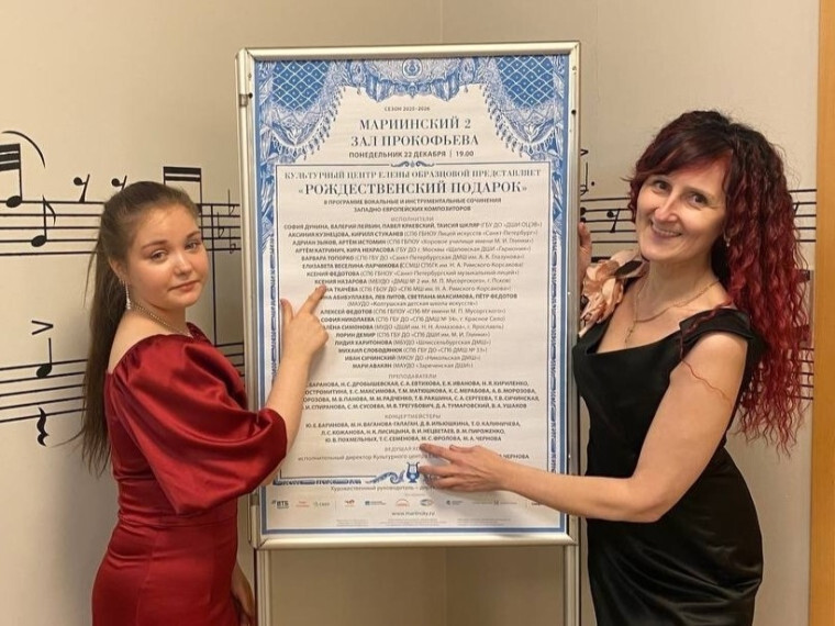 Юная псковская вокалистка Ксения Назарова выступила на одной из самых престижных сцен страны — в Зале Прокофьева Мариинского театра в Санкт-Петербурге. Концерт «Рождественский подарок», прошедший 22 декабря, был организован Культурным центром Елены Образцовой в рамках цикла «Школы искусств в гостях у Мариинского театра».