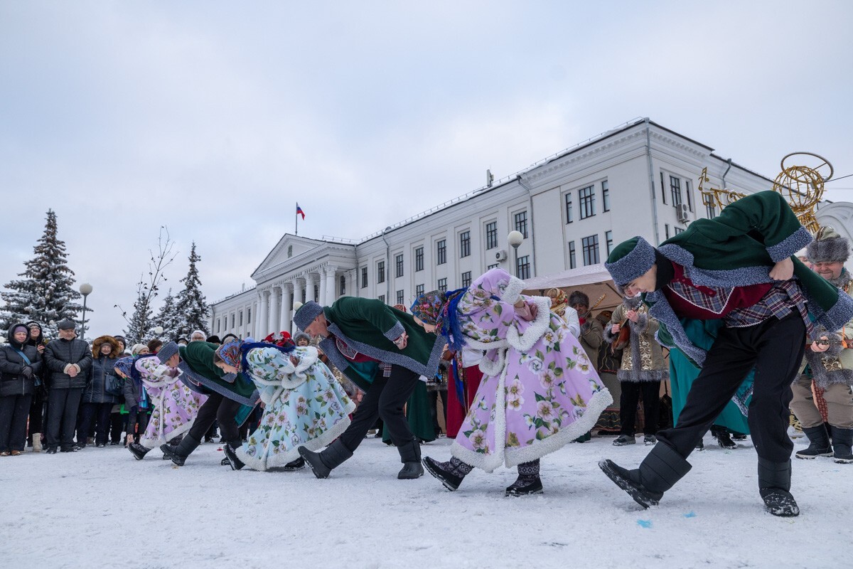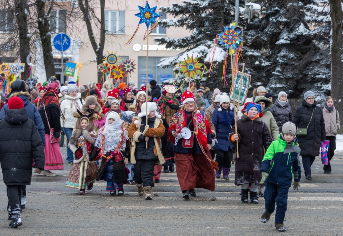 Праздник начался с яркого «Рождественского шествия», которое вчера прошло от парка Строителей через пешеходный мост к Троицкому мосту. Колонна из артистов и горожан превратилась в живой поток песен и плясок: все желали могли петь колядки, водить хороводы и слушать народные частушки под живую музыку.