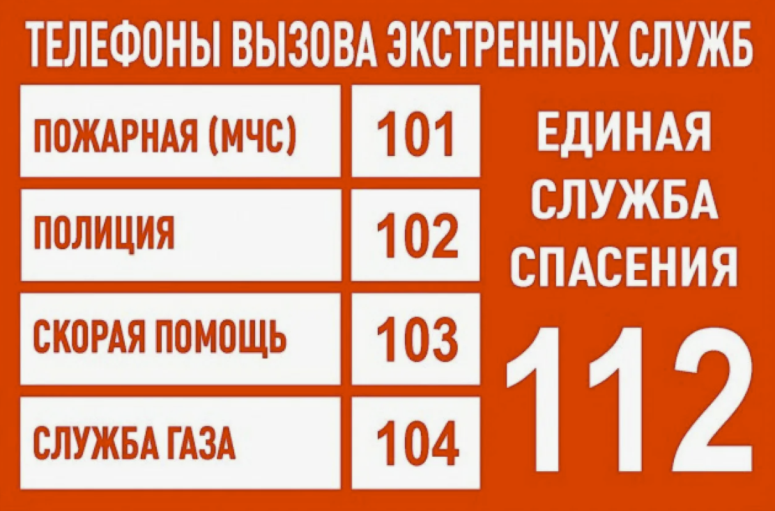 Номера экстренных служб выглядят следующим образом: