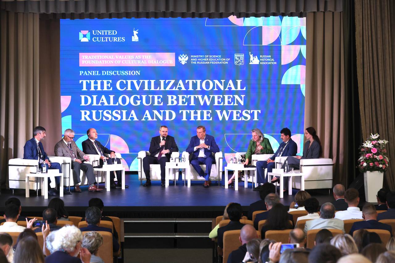 На форуме также обсуждалась роль традиционных ценностей в формировании мирового культурного пространства. Заместитель министра науки и образования России Константин Могилевский выступил модератором секции «Традиционные ценности как основа диалога культур», где эксперты из 10 стран делились мнениями и предложениями. В рамках секции прошло четыре панельных дискуссии, обсуждались вопросы сохранения культурной идентичности в эпоху глобализации и цифровых технологий.