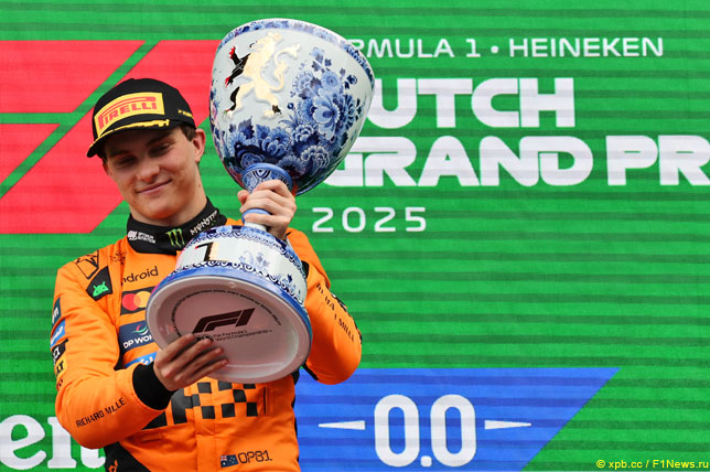 Оскар Пиастри выиграл Гран-при Нидерландов, подтвердив статус лидера сезона 2025 года в Формуле-1. На трассе в Зандворте австралийский пилот команды McLaren показал высококлассное мастерство, преодолев 72 круга длиной свыше 300 километров за 1 час 38 минут 29 секунд, опередив действующего чемпиона Макса Ферстаппена на 1,271 секунды.